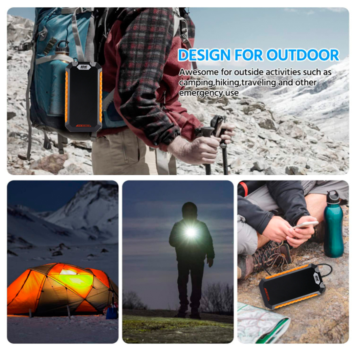 100W mediprotekta Power Bank-dezajno por ekstere mirinda por eksteraj agadoj kiel tendumado, migrado, vojaĝado kaj alia uzo. Kiam vi invitas amikojn al tendaro ekstere, vi hazarde bezonas Porteblan Power Bank por provizi al vi elektron, lumigadon ktp.